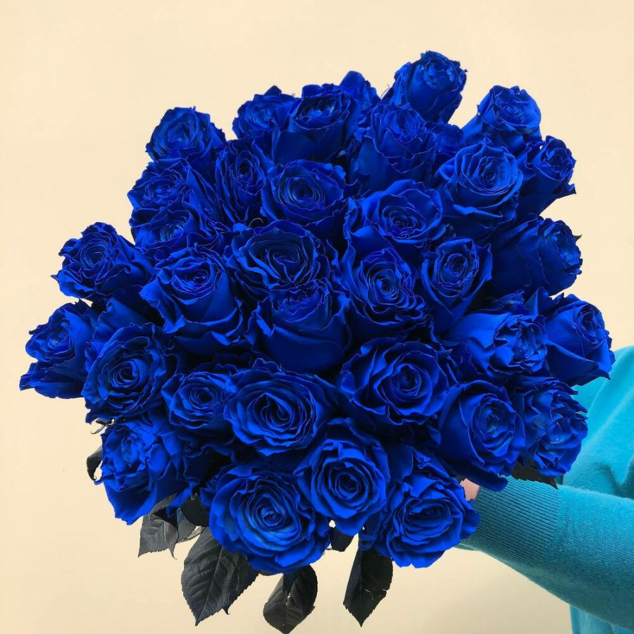 49 синих роз в дизайнерской упаковке